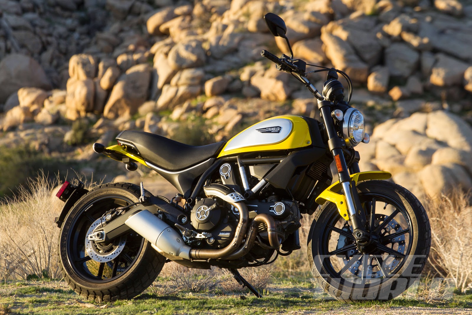 Mas a fabricante realizou alterações para tornar a entrega de força mais linear na Scrambler, com isso, a potência da Scrambler atual é de 75 cv a 8.250 rpm e 6,9 kgfm de torque a 5.750 rpm. Seu peso em ordem de marcha – pronta para rodar – é de 186 kg.