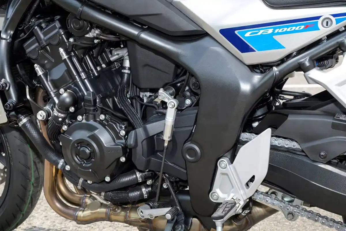 A nova CB1000F, porém, adota base mecânica da CB1000 Hornet, trazendo motor de quatro cilindros em linha com 152 cv, quadro de aço e conjunto de suspensão, rodas e freios praticamente idênticos aos da naked.