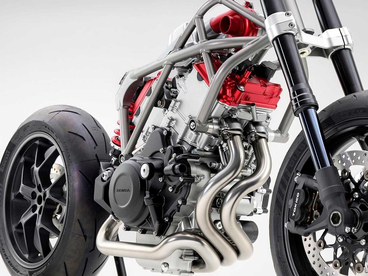 A Honda afirmou que o motor V3 é o primeiro da marca a empregar compressor elétrico para aumentar o fluxo de ar nas câmaras de combustão, melhorando o desempenho. O sistema, controlado pela ECU (Electronic Control Unit), utiliza uma bateria auxiliar e oferece torque adicional em baixas rotações, otimizando a resposta do motor sem depender exclusivamente da rotação do virabrequim.
