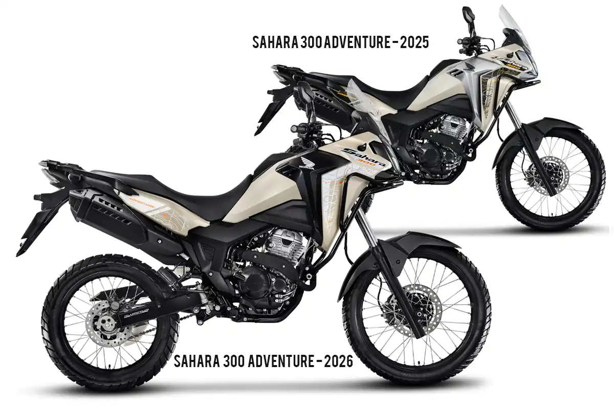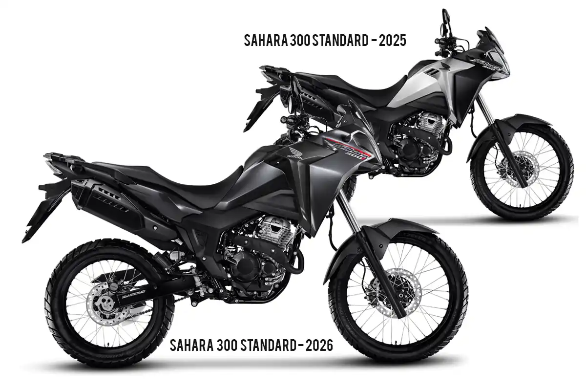 A decisão da Honda em reviver o nome Sahara – sucesso entre os anos 1990 – e aplicá-la ao projeto moderno da XRE 300 mostrou-se acertada. A Sahara 300 2026, que mantém o mesmo conjunto mecânico, agora ganha roupagem renovada e aposta na versatilidade para atender desde o uso urbano diário até viagens em estradas de terra. A linha continua dividida nas versões Standard, Rally e Adventure.