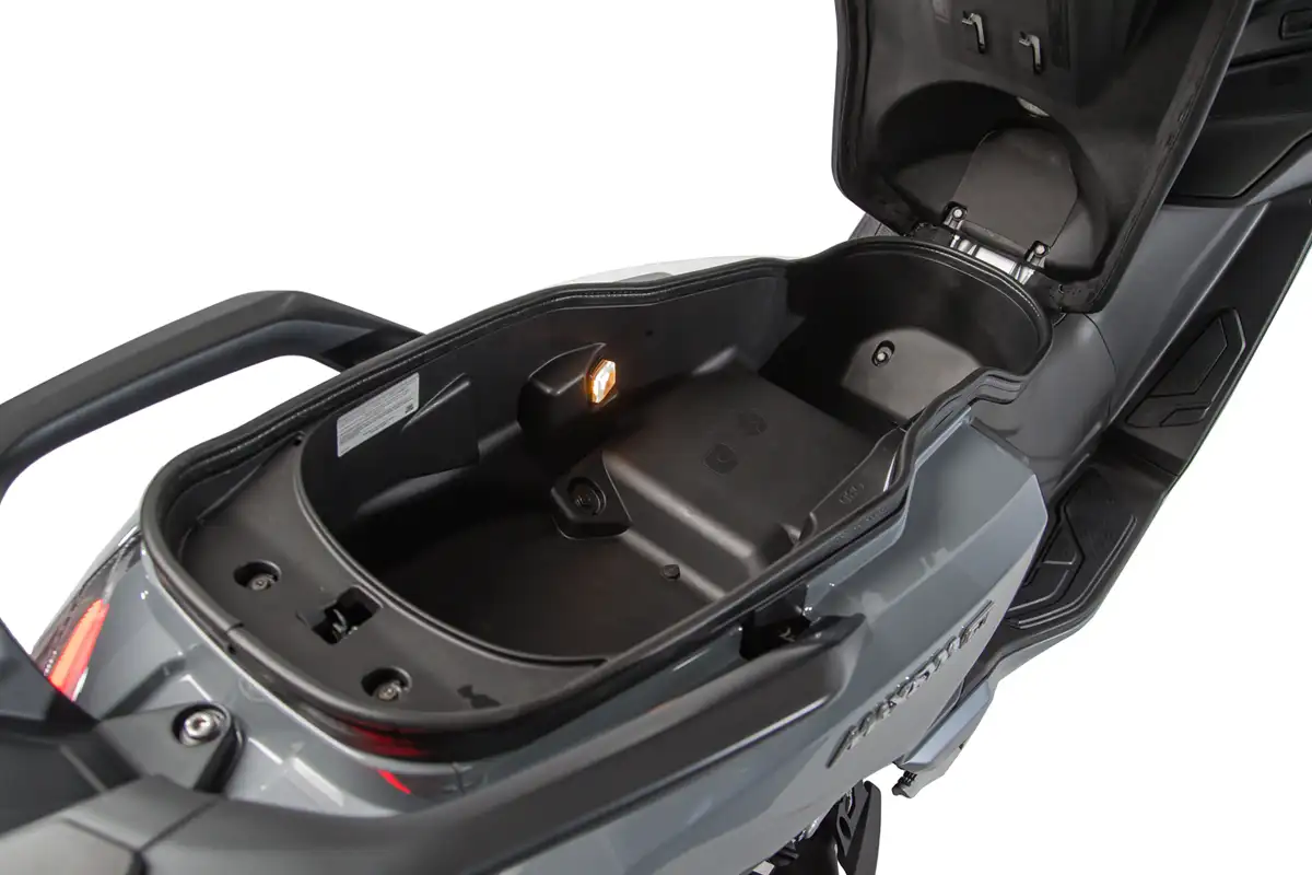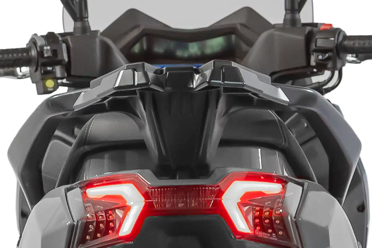 Esses itens, junto ao sistema de iluminação full LED e à ergonomia do banco, tornam a scooter mais segura tanto no trânsito urbano quanto em trajetos rodoviários curtos.