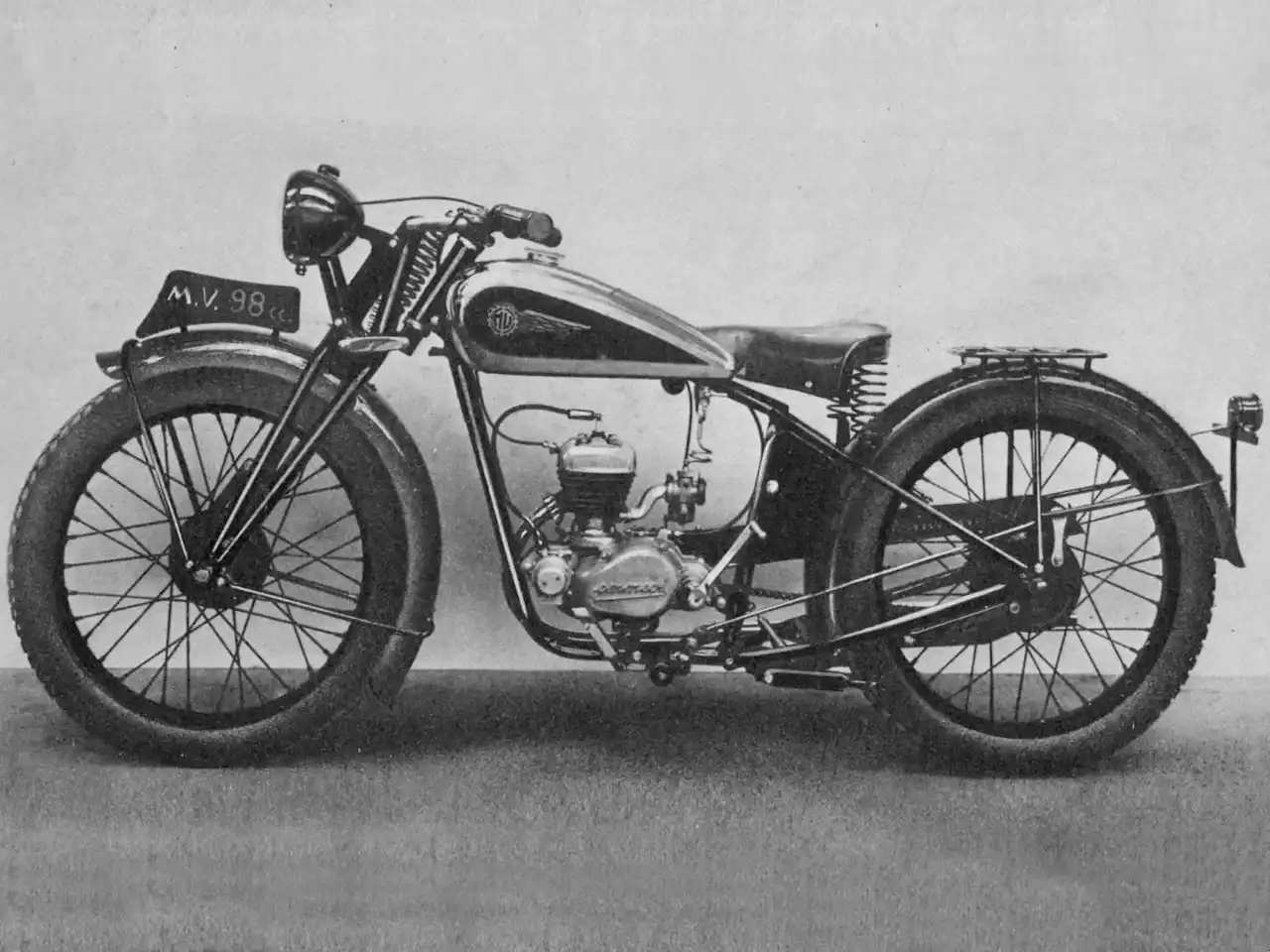 Inicialmente batizada de “Vespa 98”, a moto teve o nome alterado para “MV 98” após disputa comercial com a Piaggio. A produção em série começou em 1946, com duas versões: uma com caixa de duas marchas e outra, de perfil mais esportivo, com três velocidades. Cerca de 50 unidades foram produzidas naquele primeiro ano.