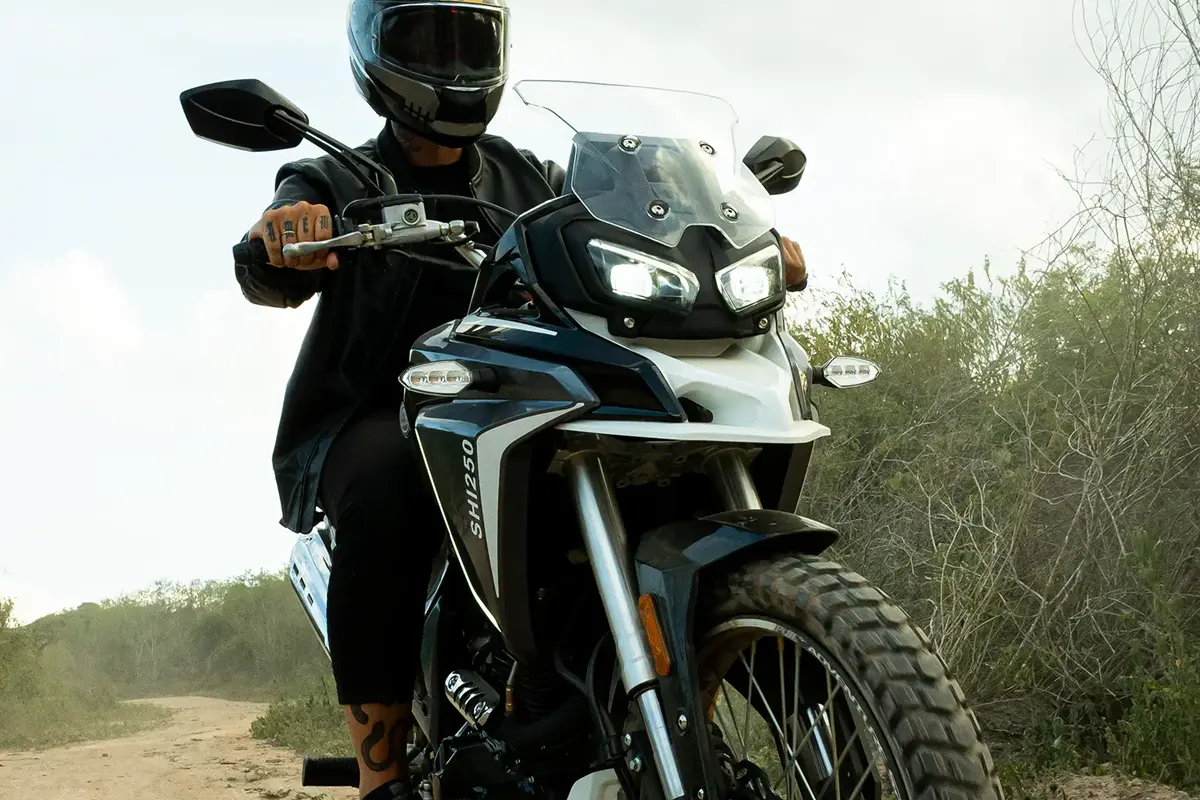 Com visual trail, rodas raiadas de medidas diferenciadas e suspensão reforçada, a Shineray SHI 250 tenta conquistar motociclistas que buscam uma alternativa mais acessível às líderes de mercado.