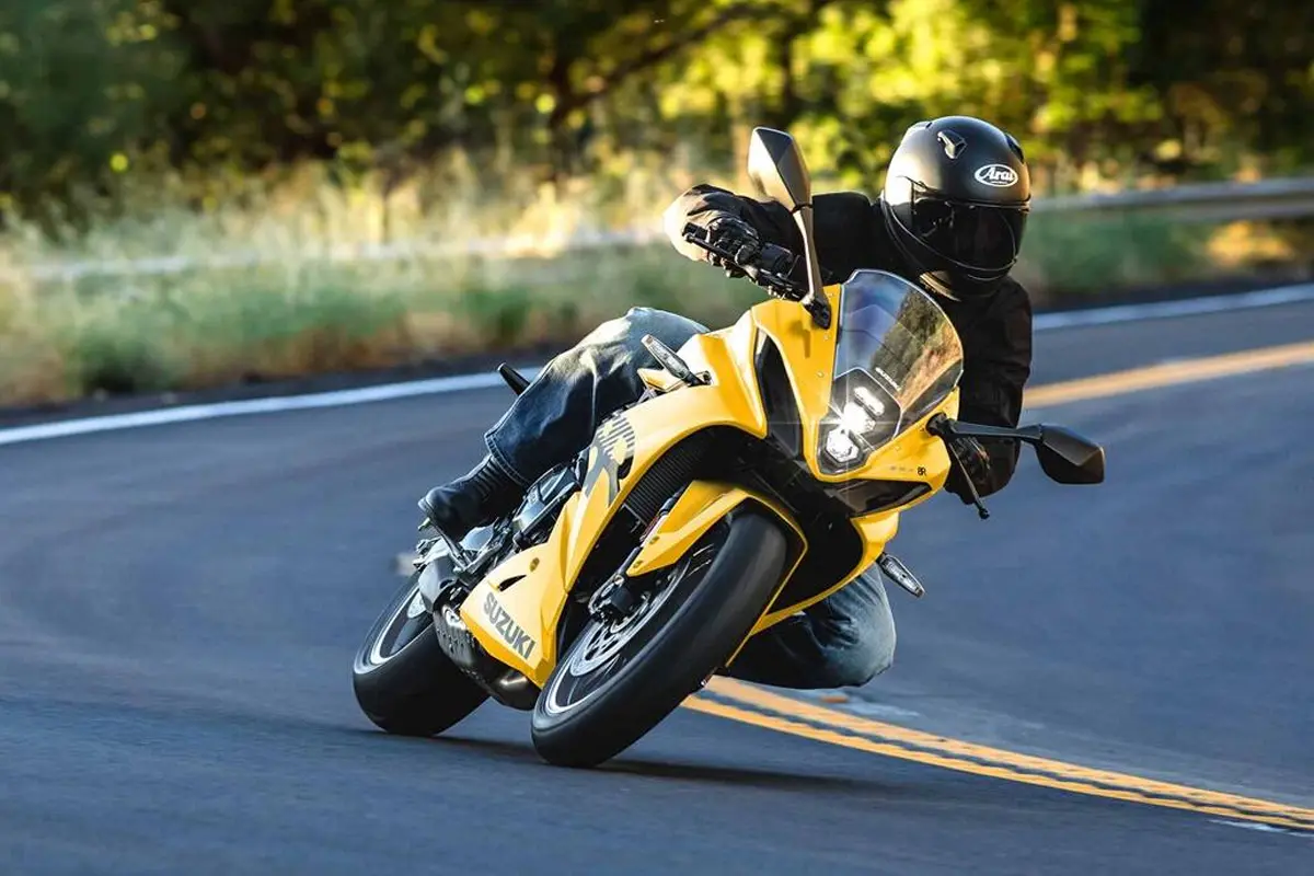 O design da Suzuki GSX-8R é marcado por uma carenagem envolvente, com entradas de ar laterais que auxiliam na aerodinâmica. O para-brisa compacto oferece boa proteção contra o vento, enquanto os defletores laterais ajudam na estabilidade em altas velocidades.