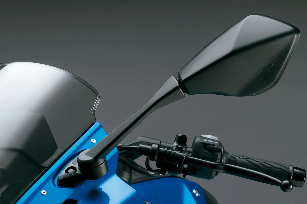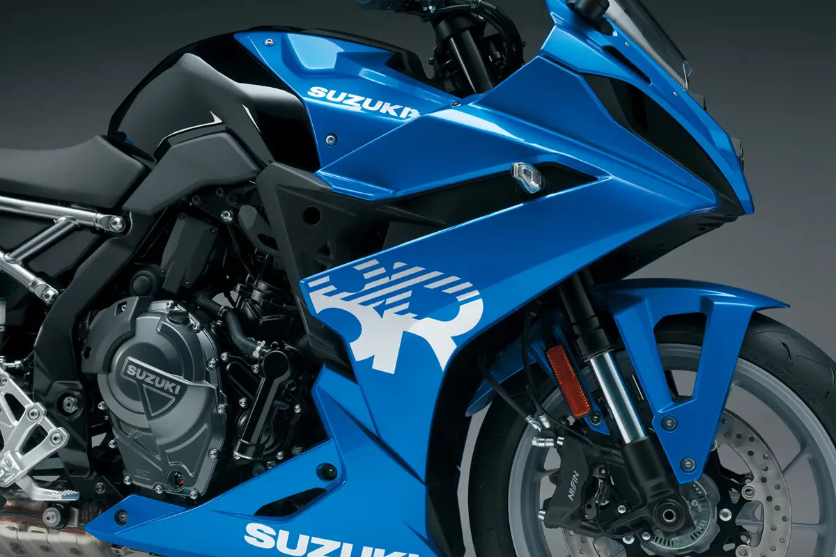 A GSX-8R compartilha vários componentes com sua irmã naked, a GSX-8S, como o painel digital em TFT, farol dianteiro e motor. No entanto, a esportiva se diferencia principalmente pelo conjunto de suspensão Showa SFF-BP (Separate Function Fork – Big Piston), que proporciona uma pilotagem mais precisa e estável.