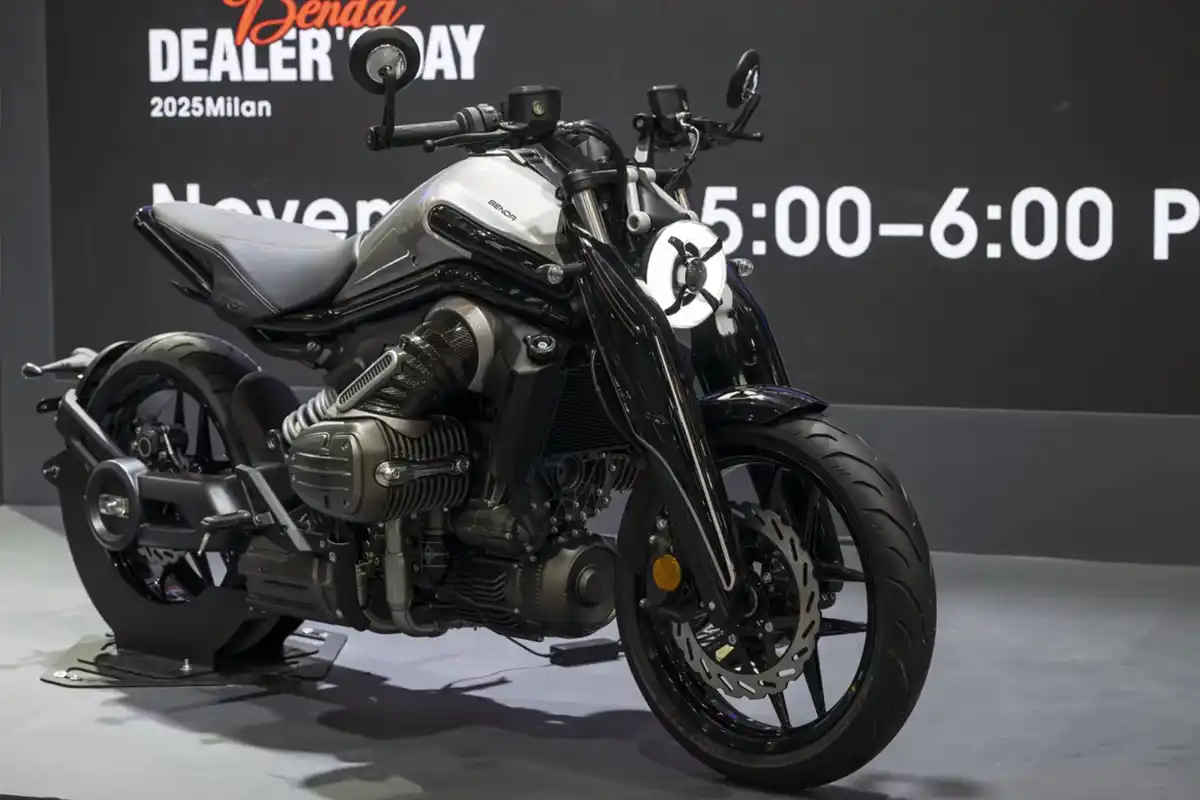 O sistema de freios Front Brake Pro+ é homologado para vias públicas e utiliza discos Brembo T-Drive ventilados de 338,5 mm de diâmetro e 6,2 mm de espessura, com pinças Brembo GP4 Sport Production usinadas em bloco único, e cilindro mestre Brembo MCS 19.21 com ajuste remoto da posição da alavanca, tecnologia já vista em competições como a Race of Champions 2024.