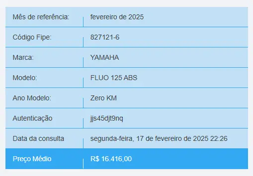 Preço da Fluo ABS 2025 na Tabela Fipe em fevereiro de 2025