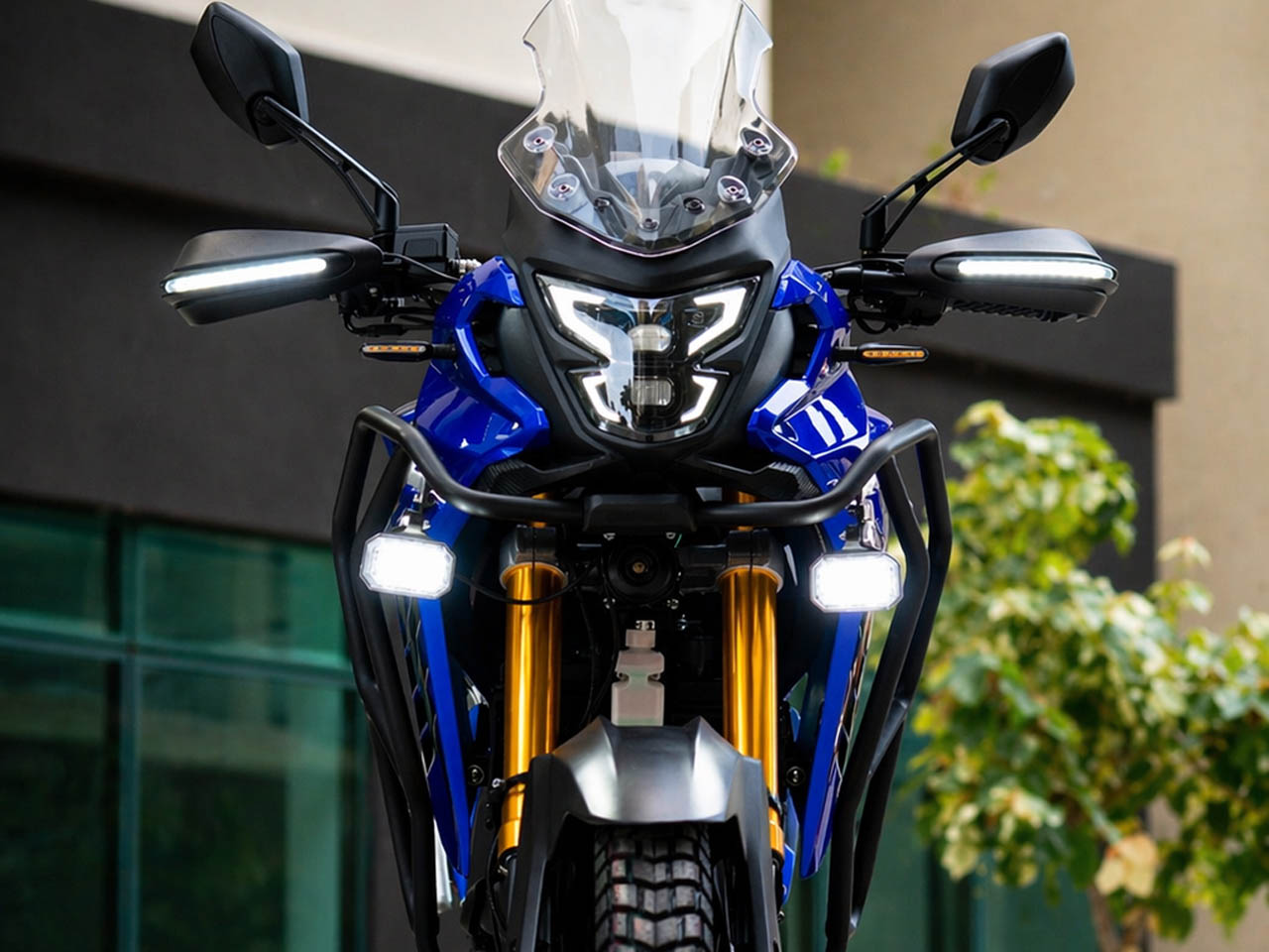 No conjunto ciclístico, a proposta é claramente voltada ao uso versátil, com suspensão dianteira invertida do tipo USD e monoamortecedor na traseira. As rodas são raiadas, com aro de 19 polegadas na dianteira e 17 polegadas na traseira, favorecendo o comportamento em pisos irregulares.
