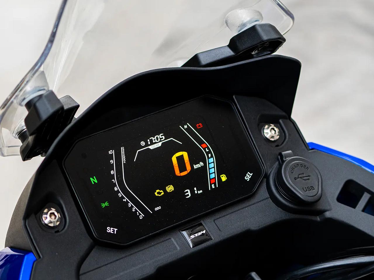 O sistema de freios conta com discos nas duas rodas e ABS de dois canais, a elétrica inclui iluminação full LED e painel digital em LCD, reunindo informações de condução de forma centralizada, conforme informação divulgada pela SBM.