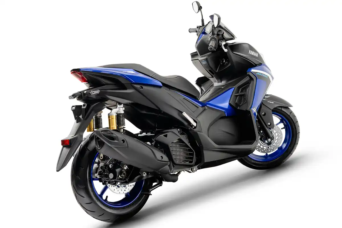 No conjunto ciclístico, a Yamaha Aerox ABS utiliza suspensão dianteira com garfo telescópico e curso de 100 mm. Na traseira, o modelo conta com suspensão de 86 mm equipada com subtank de gás duplo.