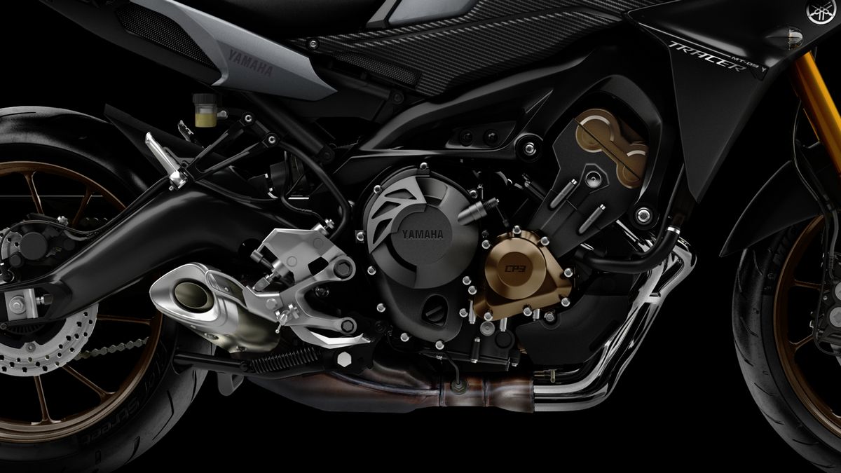 A característica mais marcante deste tricilíndrico batizado pela Yamaha de CP-3 (Crossplane 3 cylinder), é a maneira linear com que ele desenvolve a potência e entrega um excelente torque, tornando a MT-09 Tracer uma máquina rápida e de dirigibilidade excepcional. Isso acontece graças à tecnologia “Crossplane“, na qual os eixos do virabrequim são posicionados a 120 graus. Esta geometria oferece equilíbrio ao motor de três cilindros, compensando as forças de inércia resultantes do seu movimento e faz com que a produção de potência seja contínuo. Por conta disso, o som da MT-09 Tracer tem característica esportiva.