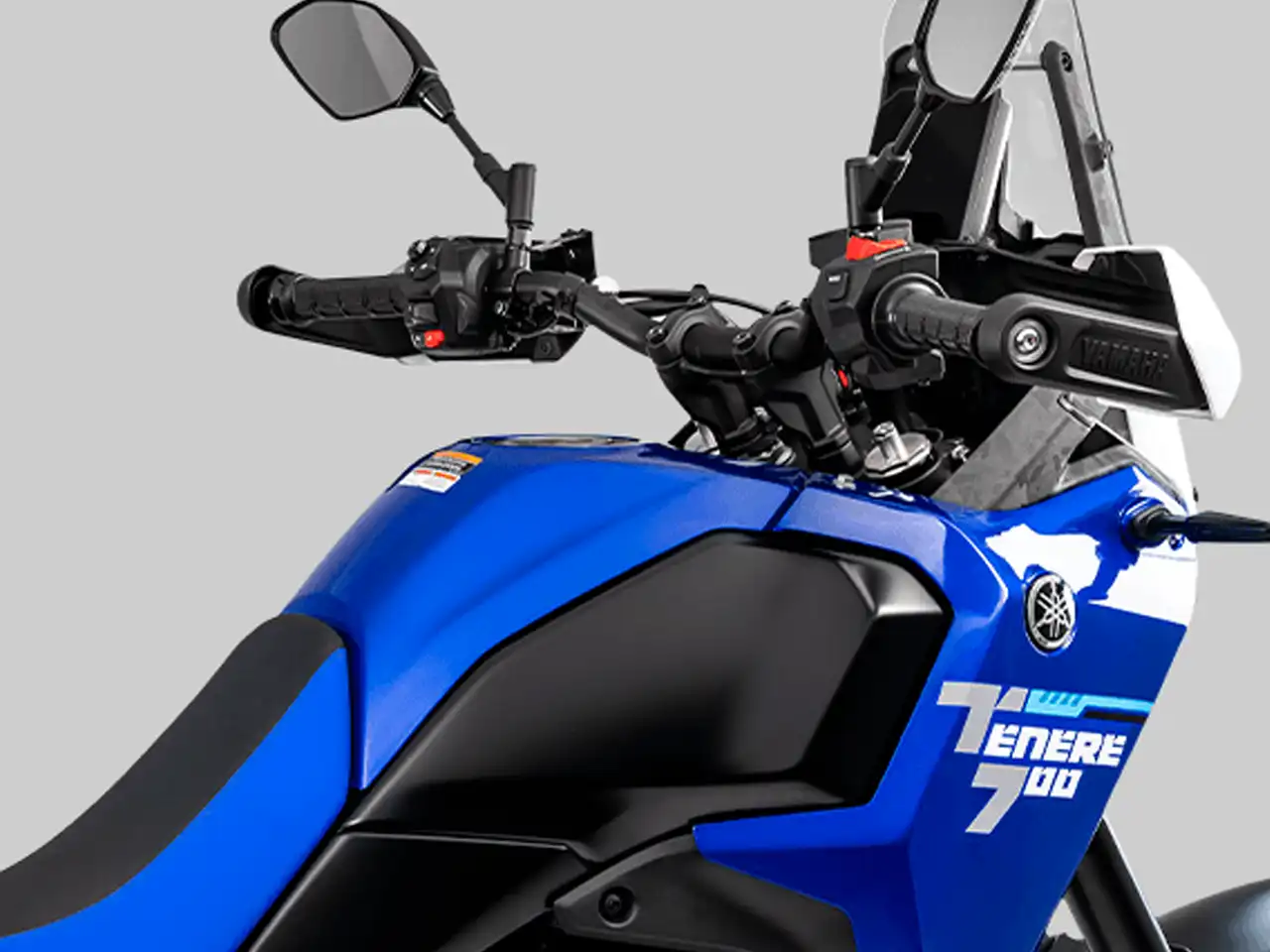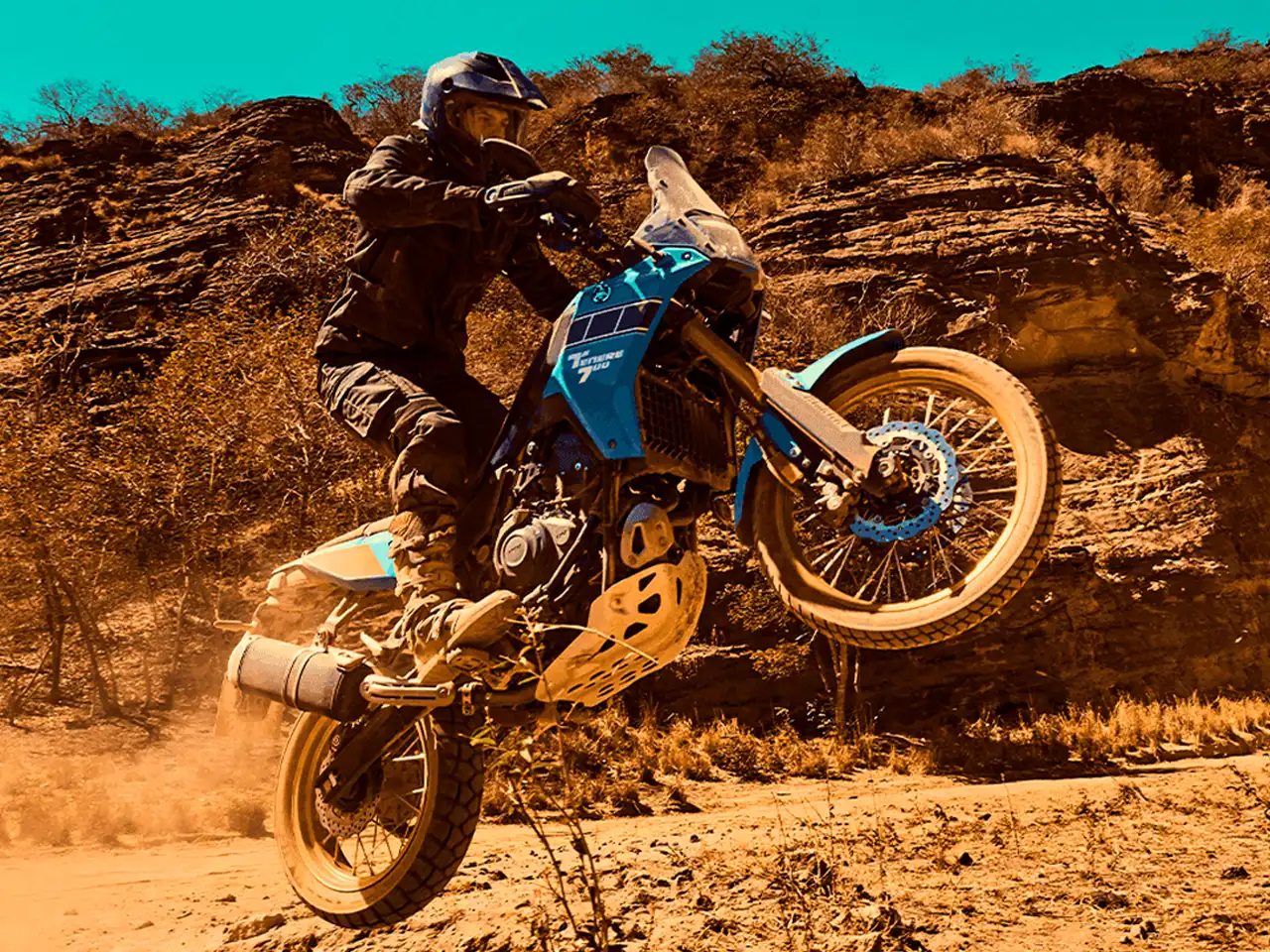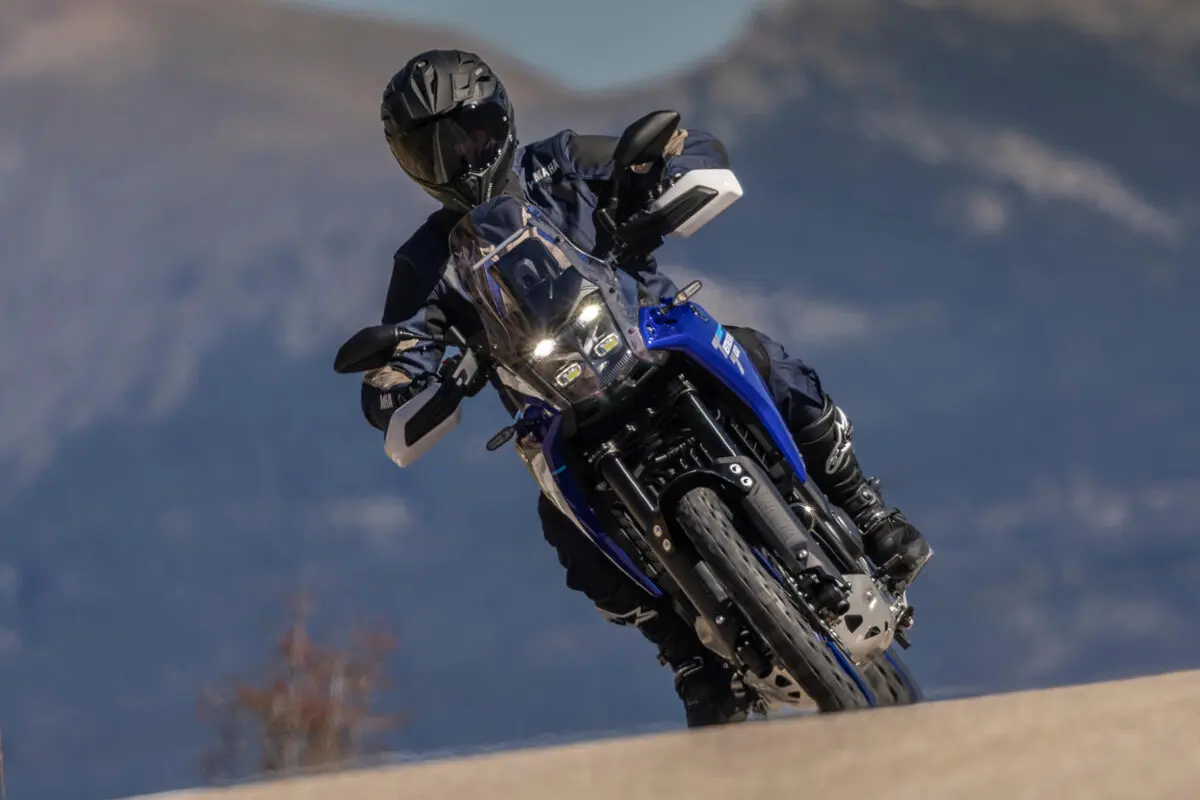 A Yamaha Ténéré 700 utiliza um motor bicilíndrico de 689 cm³, com potência de 68,9 cv e torque de 6,6 kgf.m.